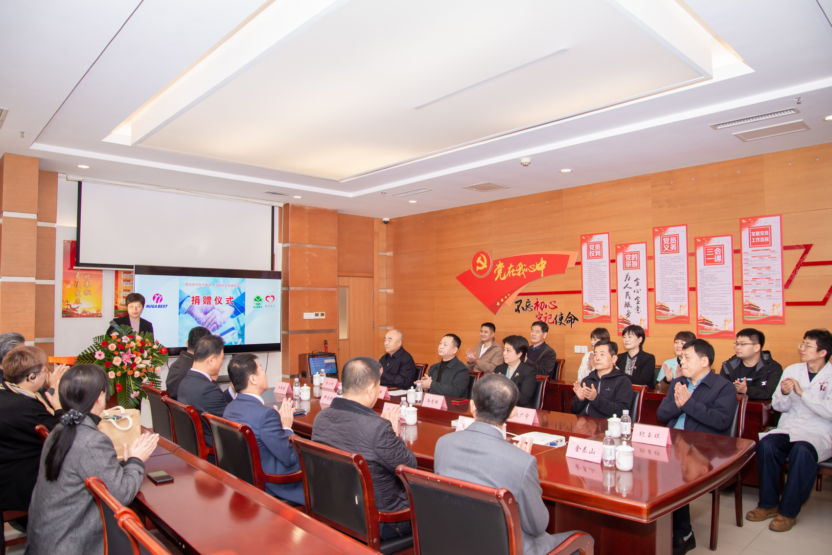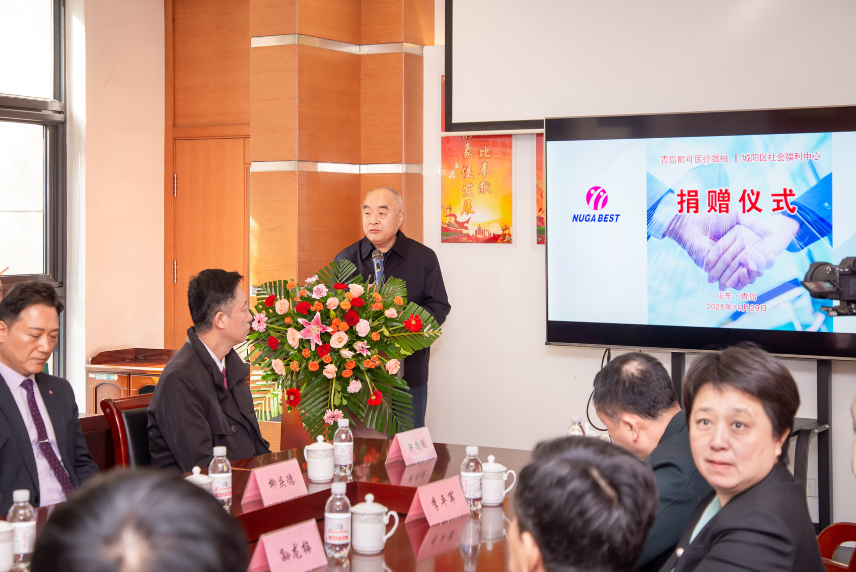 青島麗可醫療器械有限公司的崔熙準代表及公司任職員,城陽(yáng)區社會(huì )福利中心、城陽(yáng)區民政局、城陽(yáng)區總工會(huì )、城陽(yáng)區街道辦事處、城陽(yáng)區紅十字會(huì )、城陽(yáng)區大北曲前社區、青島陽(yáng)光救援隊等單位的領(lǐng)導共同出席了此次捐贈儀式。