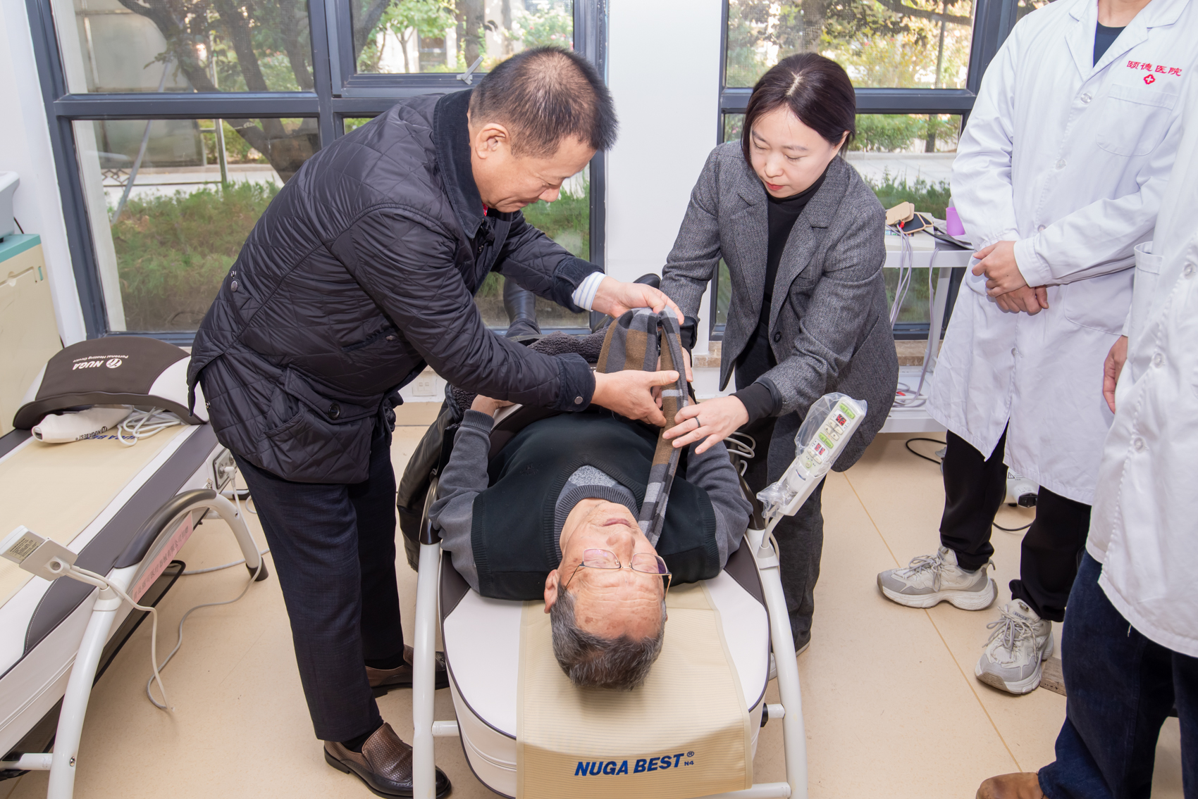 儀式結束后,各方領(lǐng)導移步城陽(yáng)區社會(huì )福利中心的麗可產(chǎn)品體驗室參觀(guān)交流。福利中心的長(cháng)者們在工作人員的引導下,現場(chǎng)體驗了 N4 自動(dòng)溫熱組合醫療器與 T1-2 腹部溫熱蓋,公司相關(guān)人員還詳細講解了產(chǎn)品原理與使用方法,讓體驗者感受到來(lái)自麗可的健康關(guān)愛(ài)。